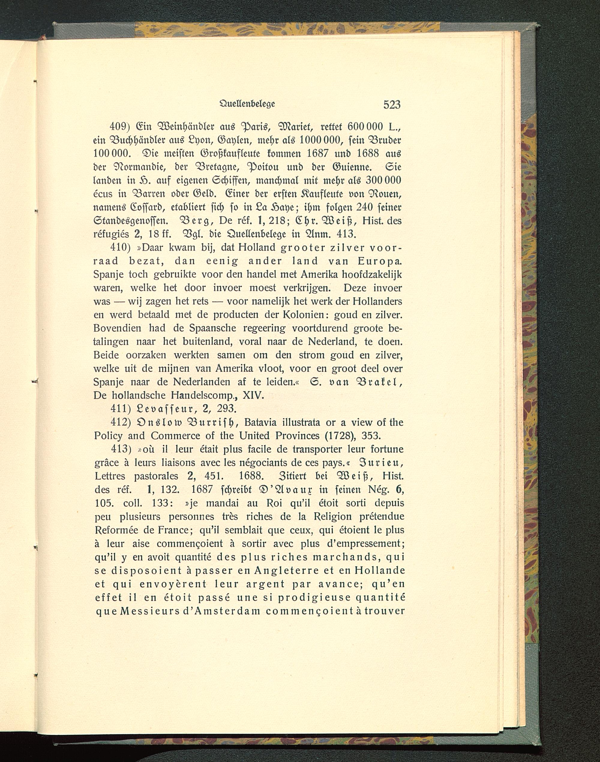 413) ^>oü il leur etsit plus lacile cle transporter leur lortuneArace a leurs liaisons avec les ne^ociants cle ces pavs.r Iurieu,I_ettres Pastorales 2, 451. 1688. Zitiert bei Weiß, «ist.cles rel. I, 132. 1687 schreibt D'Avaux in seinen NeZ. 6,105. coll. 133: ->je manclai au Hoi qu'il etoit sorti clepuispeu plusieurs personnes tres ricnes 6e la l^eli^ion pretencluek^elormee cle Trance; qu'il semblait que ceux, qui etoient le plusa leur aise commen^oient a sortir avec plus ci'empressement;qu'il v en avoit czuantite cles plus ricnes marcnancls, quise clisposoient apasser en^n^leterre et en «ollancleet qui envoverent leur ar^ent par avance; qu'eneklet il en etoit passe une si procli^i euse quantiteque Messieurs cl'^msterclam commenc^oientätrouver