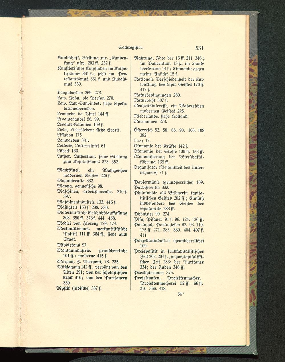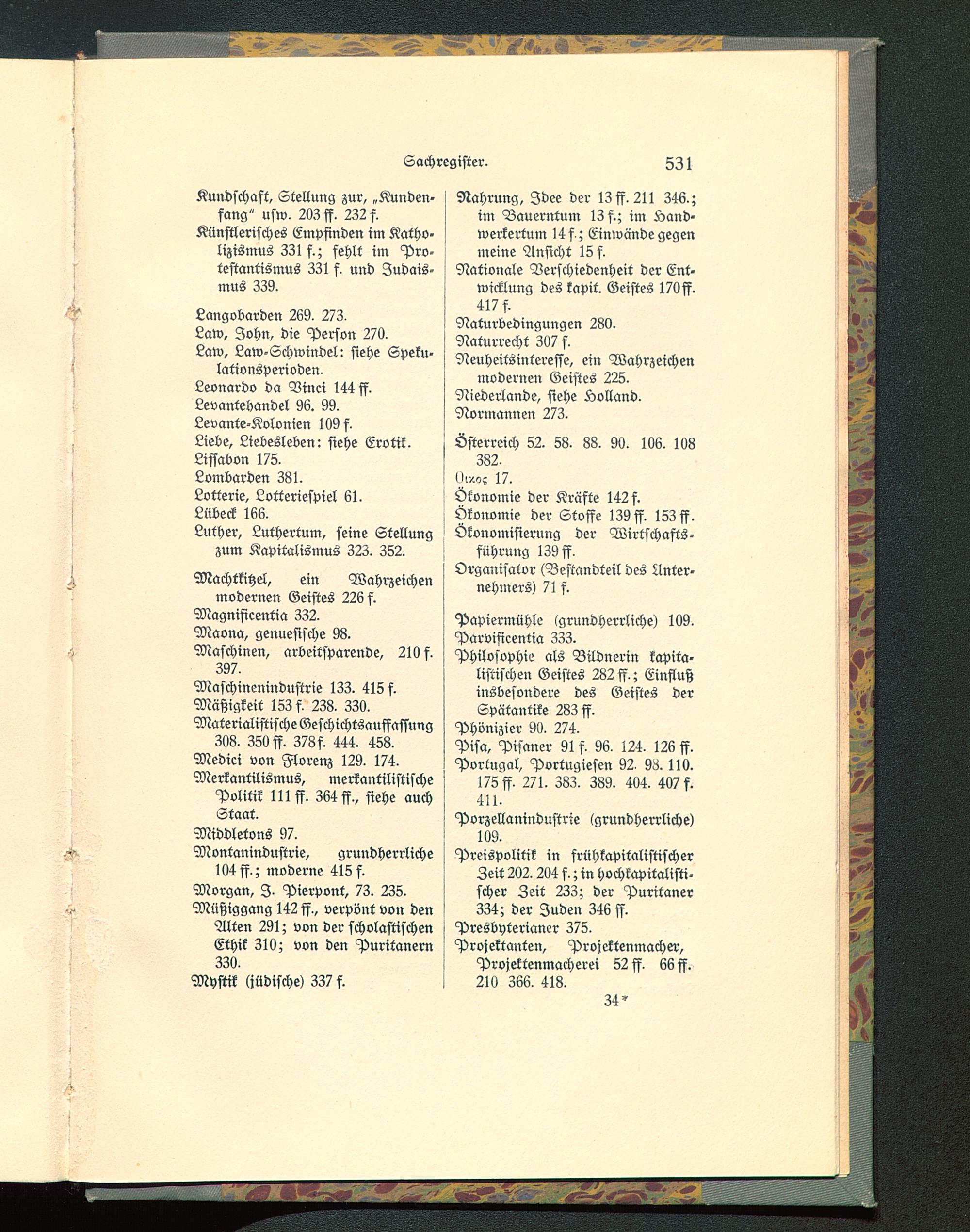 ! Nahrung, Idee der 13 ff. 211 346.;im Bauerntum 13 f.; im Äand-werkertum 14 f; Einwände gegenmeine Ansicht 15 f.Nationale Verschiedenheit der Ent-Wicklung des kapit. Geistes 170ff.417 f.