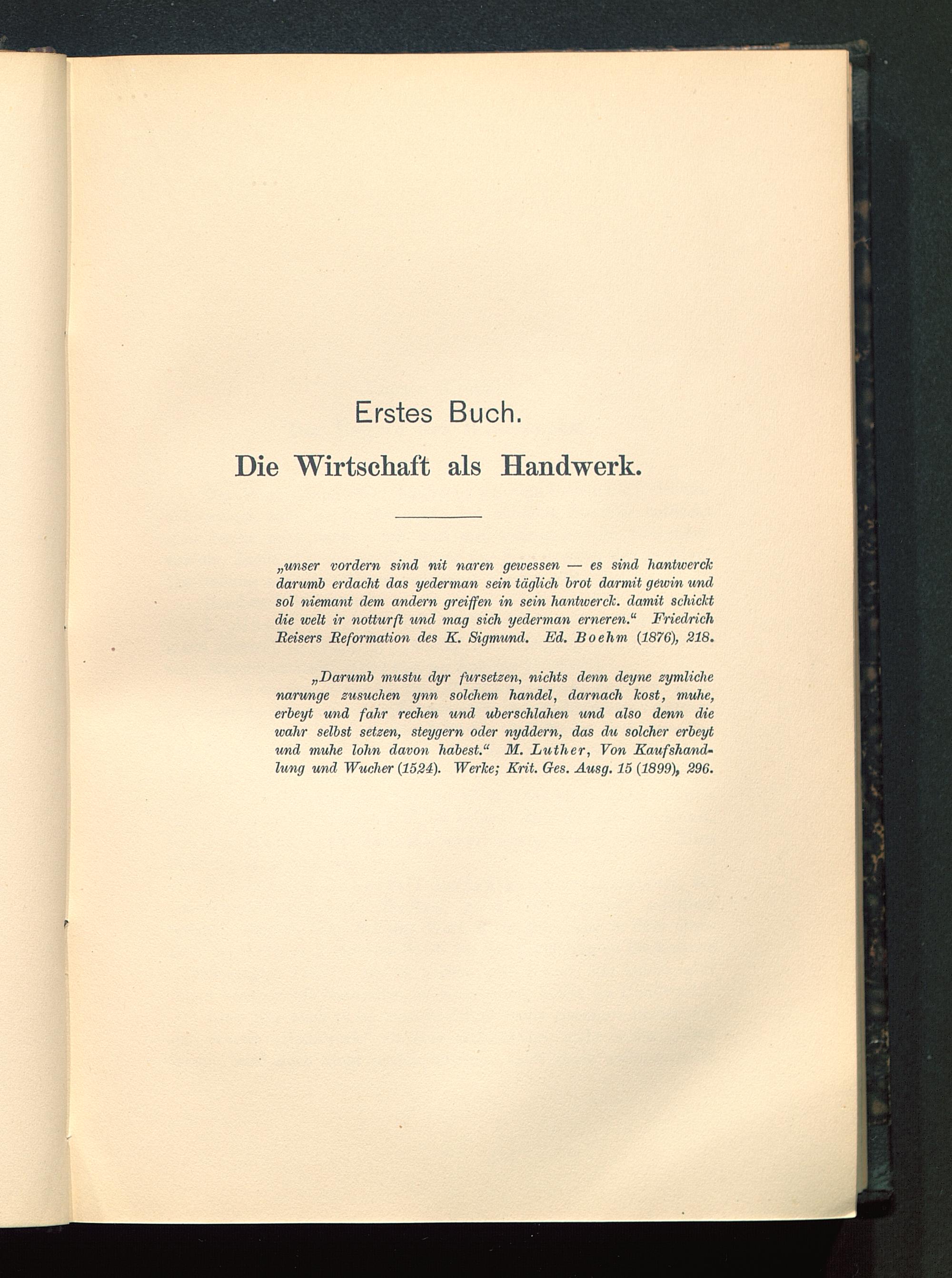 „unser vordem sind nit naren gemessen — es sind hantwerckdarmrib erdacht das yederman sein täglich brot darmit gewin undsol niemant dem andern greiffen in sein hantwerck. damit schicktdie weit ir notturß und mag sich yederman erneren.“ FriedrichBeisers Beformation des K. Sigmund. Ed. Boehm {1876), 218.