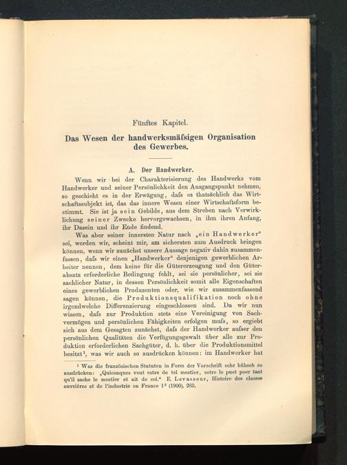 Was aber seiner innersten Natur nach „ein Handwerker“sei, werden wir, scheint mir, am sichersten zum Ausdruck bringenkönnen, wenn wir zunächst unsere Aussage negativ dahin zusammen-fassen, dafs wir einen „Handwerker“ denjenigen gewerblichen Ar-beiter nennen, dem keine für die Gütererzeugung und den Güter-absatz erforderliche Bedingung fehlt, sei sie persönlicher, sei siesachlicher Natur, in dessen Persönlichkeit somit alle Eigenschafteneines gewerblichen Produzenten oder, wie wir zusammenfassendsagen können, die Produktionsqualifikation noch ohneirgendwelche Differenzierung eingeschlossen sind. Da wir nunwissen, dafs zur Produktion stets eine Vereinigung von Sach-vermögen und persönlichen Fähigkeiten erfolgen mufs, so ergiebtsich aus dem Gesagten zunächst, dafs der Handwerker aufser denpersönlichen Qualitäten die Verfügungsgewalt über alle zur Pro-duktion erforderlichen Sachgüter, d. h. über die Produktionsmittelbesitzt 1 , was wir auch so ausdrücken können: im Handwerker hat