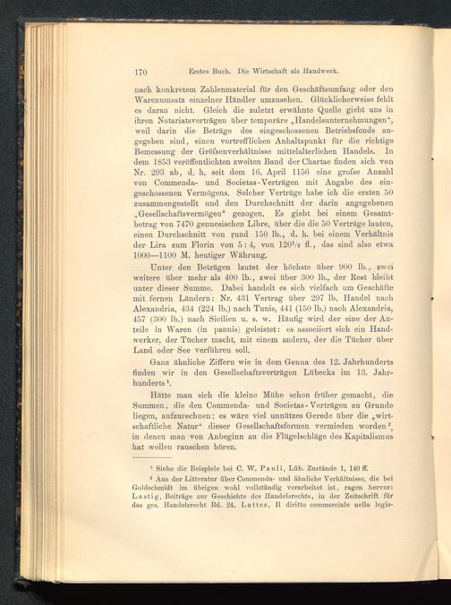 457 (300 lb.) nach Sicilien u. s. w. Häufig wird der eine der An-teile in Waren (in pannis) geleistet: es associiert sich ein Hand-werker, der Tücher macht, mit einem andern, der die Tücher überLand oder See verführen soll.