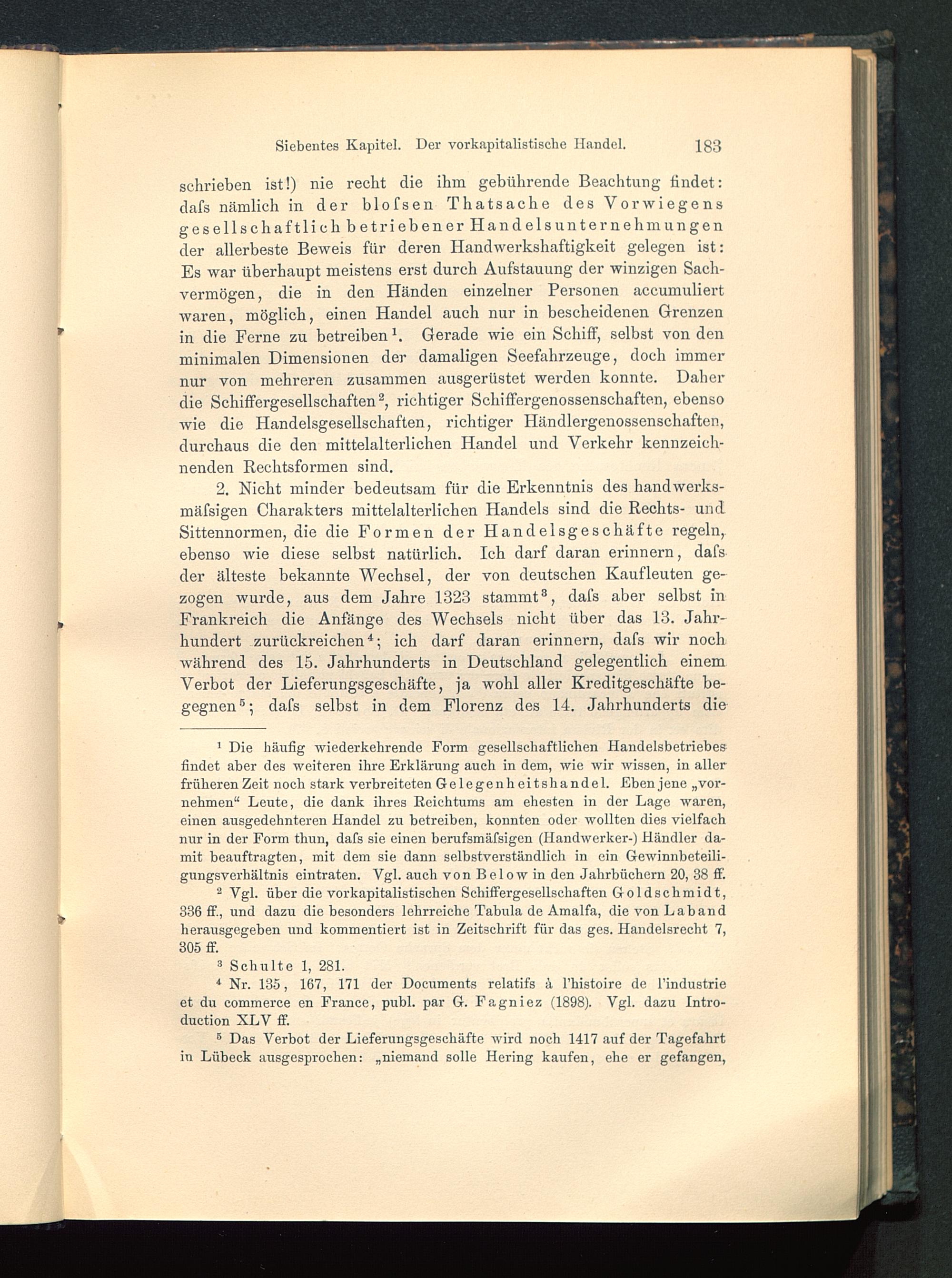 2 Vgl. über die vorkapitalistischen Schiffergesellschaften Goldschmidt,336 ff, und dazu die besonders lehrreiche Tabula de Amalfa, die von Lab andherausgegeben und kommentiert ist in Zeitschrift für das ges. Handelsrecht 7,305 ff.