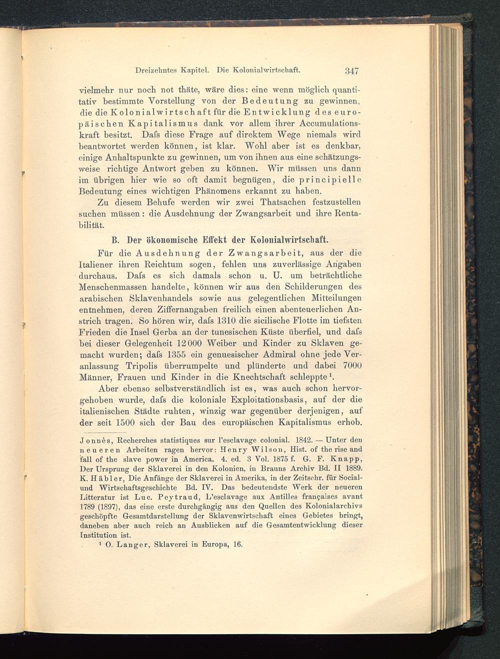 vielmehr nur noch not thäte, wäre dies: eine wenn möglich quanti-tativ bestimmte Vorstellung von der Bedeutung zu gewinnen,die die Kolonialwirtschaft für die Entwicklung des euro-päischen Kapitalismus dank vor allem ihrer Accumulations-kraft besitzt. Dafs diese Frage auf direktem Wege niemals wirdbeantwortet werden können, ist klar. Wohl aber ist es denkbar,einige Anhaltspunkte zu gewinnen, um von ihnen aus eine schätzungs-weise richtige Antwort geben zu können. Wir müssen uns dannim übrigen hier wie so oft damit begnügen, die principielleBedeutung eines wichtigen Phänomens erkannt zu haben.