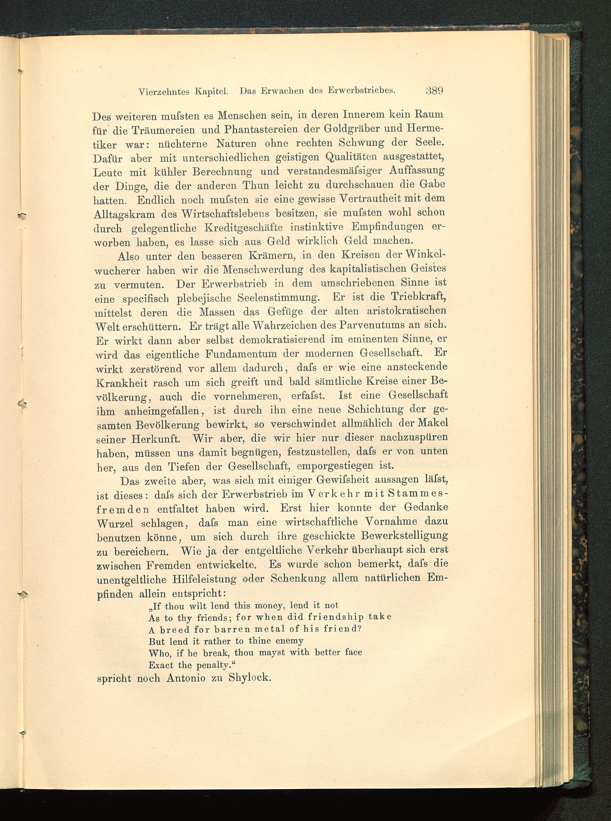 But lend it rather to tbine enemyWho, if he break, thou mayst with better faceExact the penaltv.“spricht noch Antonio zu Shylock.