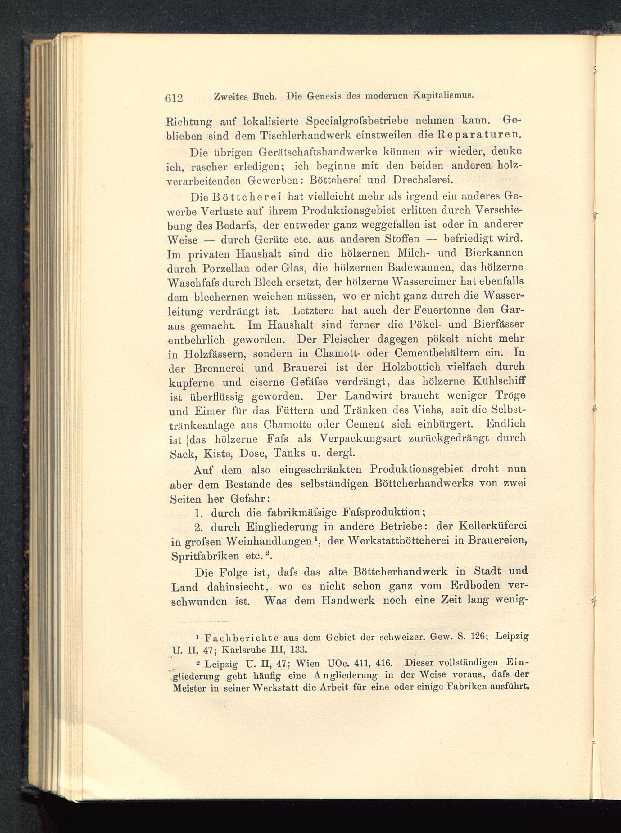 2. durch Eingliederung in andere Betriebe: der Kellerküfereiin grofsen Weinhandlungen 1 , der Werkstattböttcherei in Brauereien,Spritfabriken etc. 2 3 .