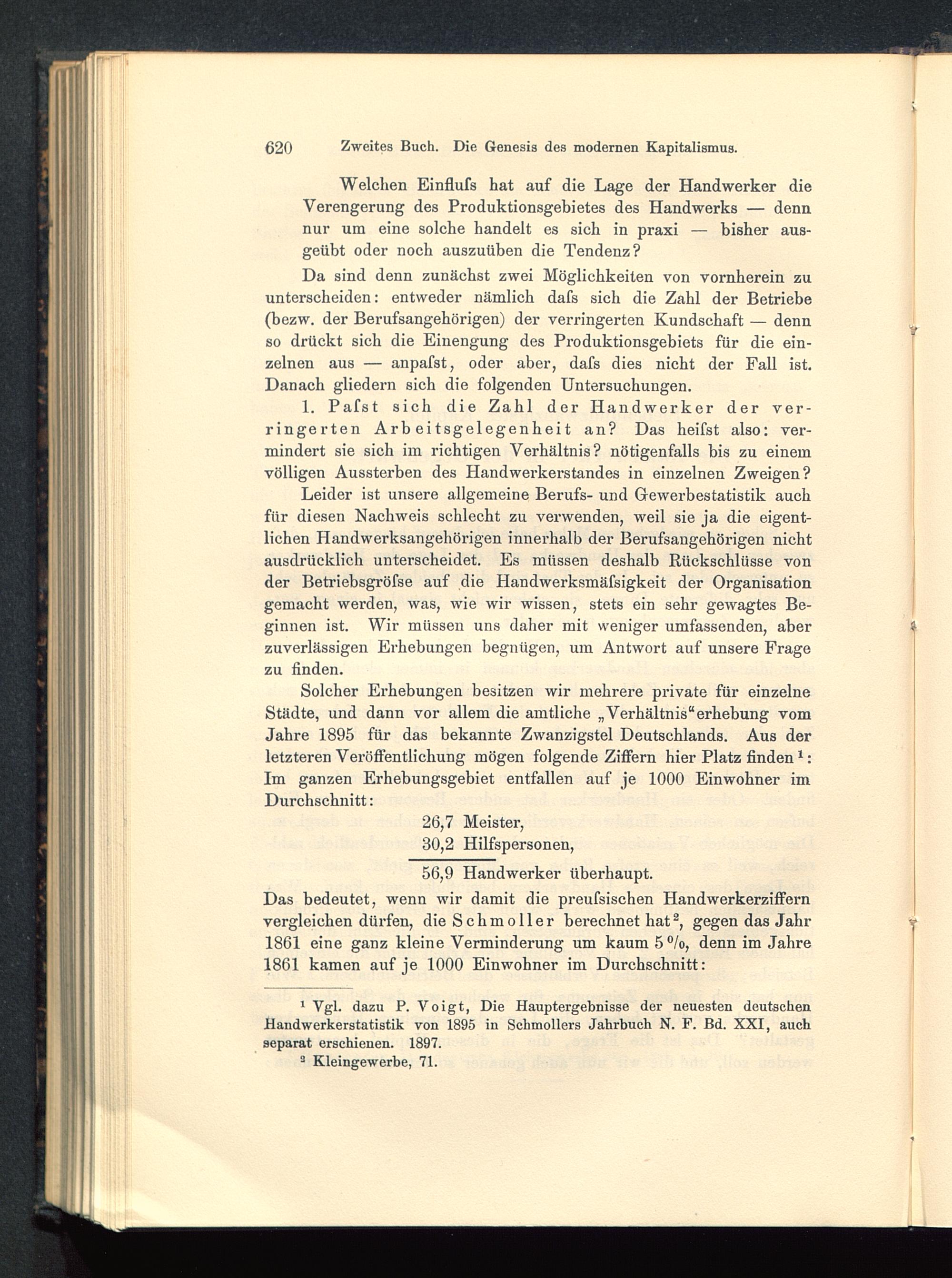 Das bedeutet, wenn wir damit die preufsischen Handwerkerziffernvergleichen dürfen, die Schm oller berechnet hat 2 3 , gegen das Jahr1861 eine ganz kleine Verminderung um kaum 5°/o, denn im Jahre1861 kamen auf je 1000 Einwohner im Durchschnitt: