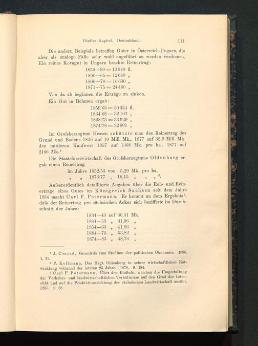 Aufserordentlich detaillierte Angaben über die Roh- und Rein-erträge eines Gutes im Königreich Sachsen seit dem Jahre1834 macht Carl F. Petermann. Er kommt zu dem Ergebnis 3 ,dafs der Reinertrag pro sächsischen Acker sich bezifferte im Durch-schnitt der Jahre: