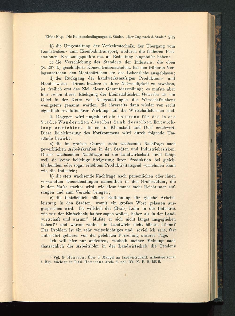 Elftes Kap. Die Existenzbedingungen d. Städte. „Der Zug nach d. Stadt.“ 235
