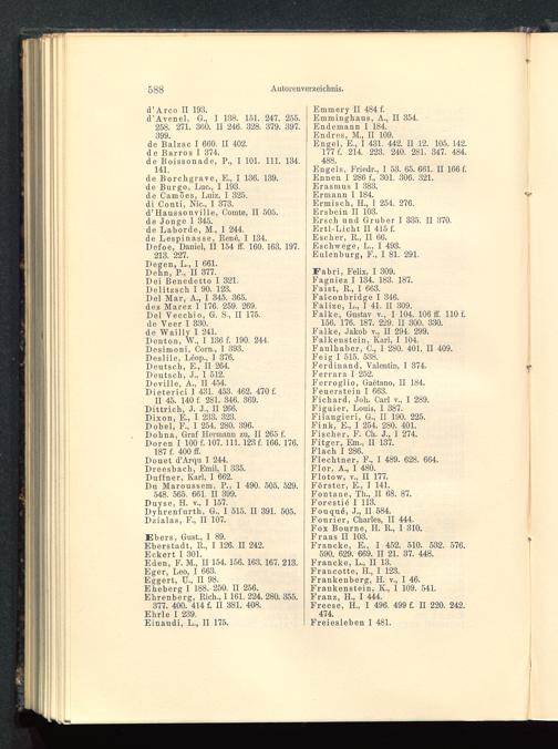de Borchgrave, E., I 136. 139.de Burgo, Luc., I 193.de Camöes, Luiz, I 325.di Conti, Nie., I 373.d’Haussonville, Comte, II 505.de Jonge I 345.de Laborde, M., I 244.de Lespinasse, Renö, I 134.