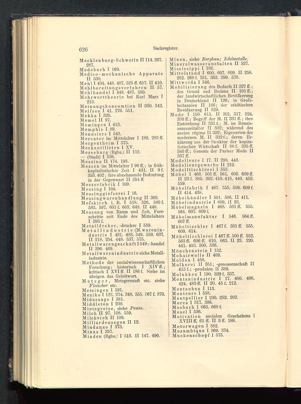 Mehl 1 434. 448. 487. 525 ff. 657. II 410.Mehlbereitungsverfahren II 57.Mehlhandel I 448. 487. 580.Mehrwerttheorie bei Karl Marx I213.