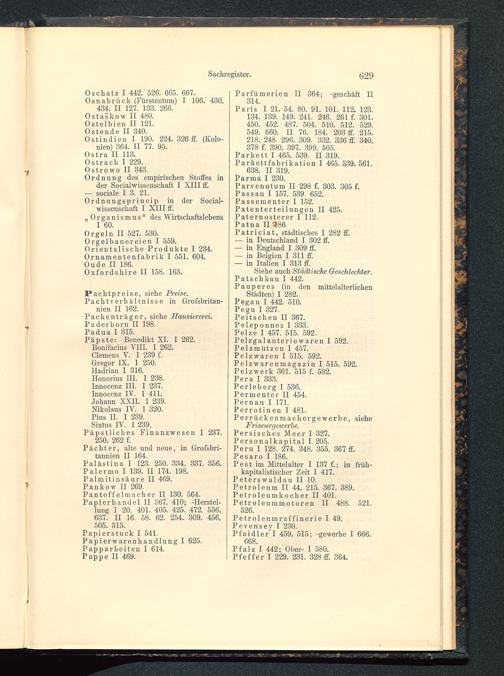 Parvenutum II 298 f. 303. 305 f.Pas sau I 157. 539. 652.Passementer I 152.Patenterteilungen II 425.Paternosterer I 112.