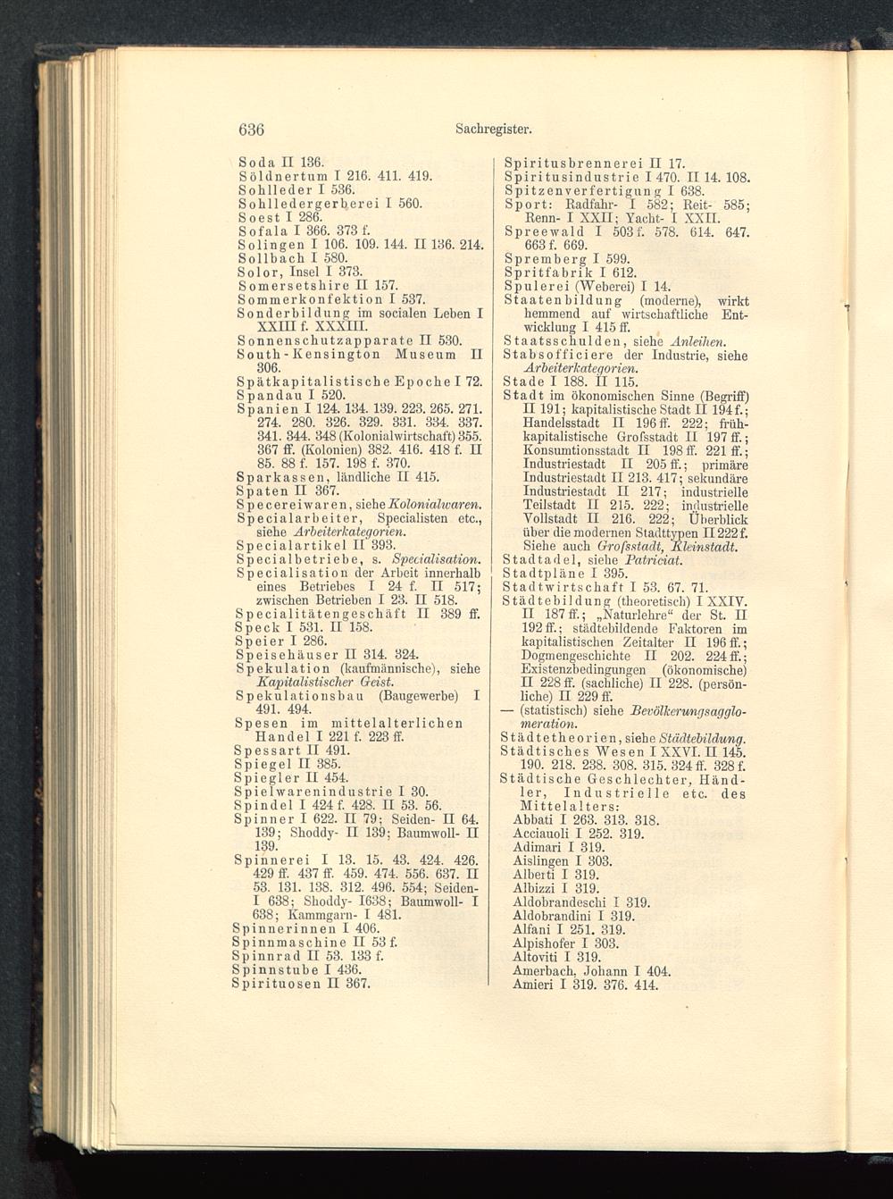 Speisehäuser II 314. 324.Spekulation (kaufmännische), sieheKapitalistischer Geist.Spekulationsbau (Baugewerbe) I491. 494.