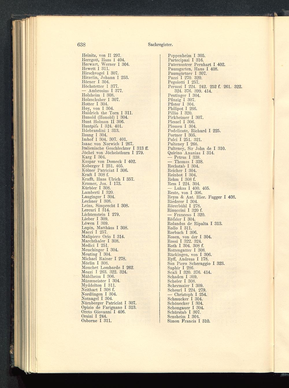 Paternustrer Pernhart I 402.Paumgarten, Hans I 408.Paumgärtner I 307.
