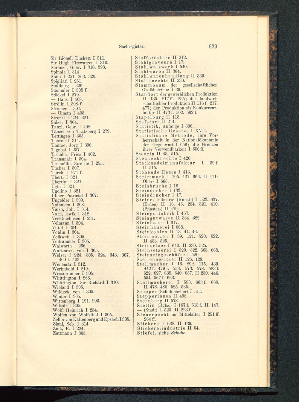 Steinsetzer I 640. II 230. 525.Steinsetzerei I 520. 522. 663. 668.Steinsetzgeschäfte I 520.Stellenbesitzer II 126. 129.Stellmacher I 16. 89f. 115. 439.442 f. 479 f. 558. 573. 578. 583 f.622. 627. 638. 640. 657. II 230. 446.554. 567 f. 663.