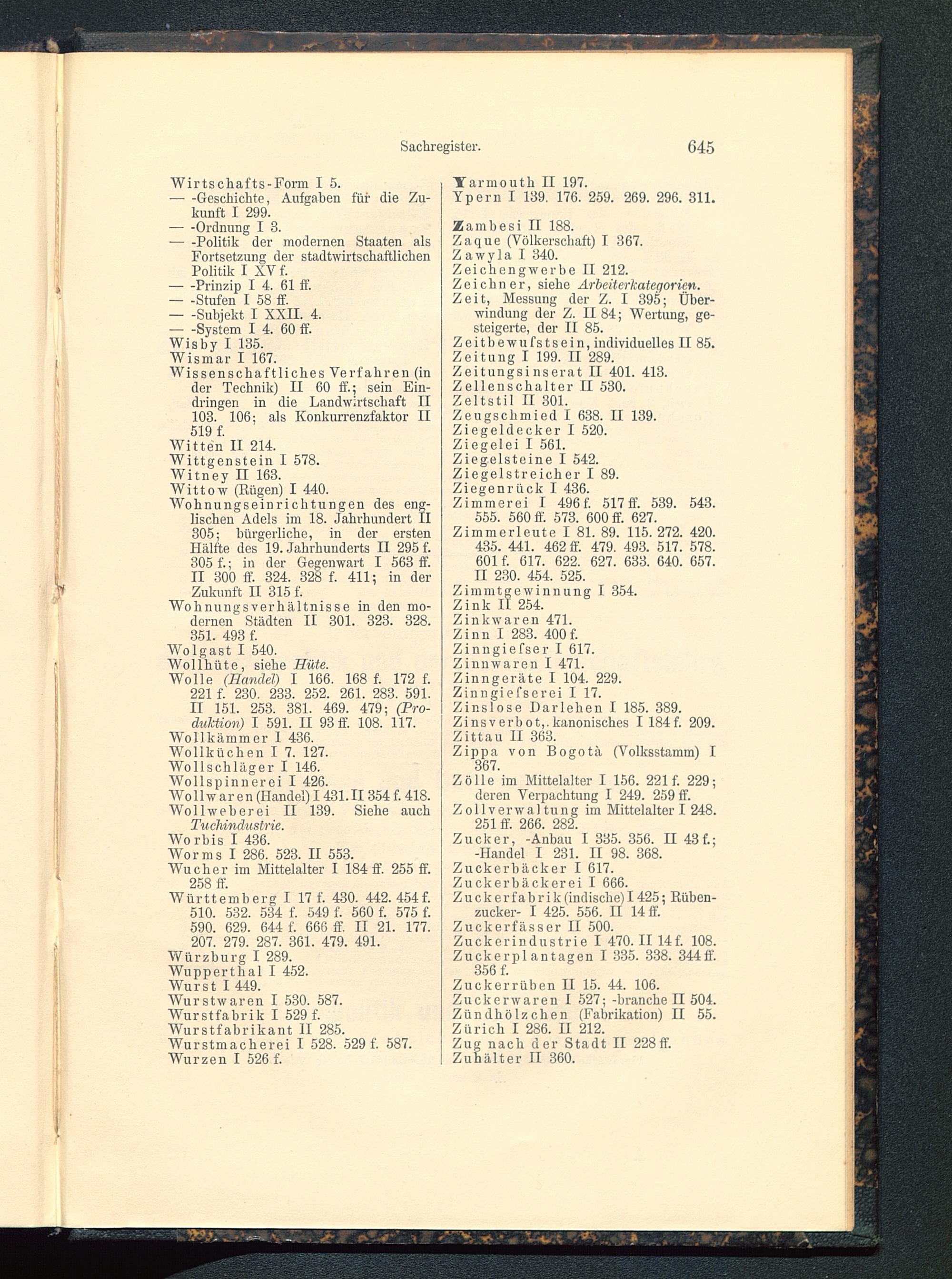 Zuckerrüben II 15. 44. 106.Zuckerwaren 1 527; -branche II 504.Zündhölzchen (Fabrikation) II 55.Zürich I 286. II 212.