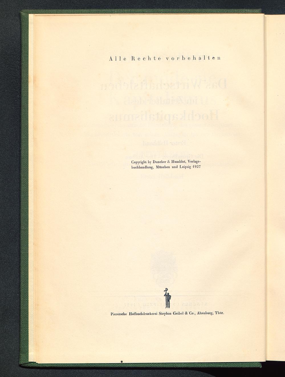 Copyright by Duncker & Humblot , Verlags-buchhandlung, München und Leipzig 1927Pierersehe Hofbuchdruckerei Stephan Geihel & Co., Altenburg , Tliilr.