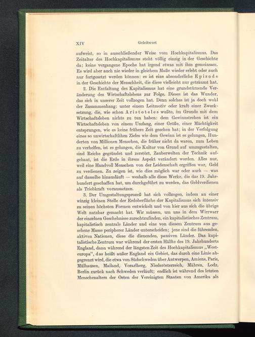 auf weist, so in abschließender Weise vom Hochkapitalismus. DasZeitalter des Hochkapitalismus steht völlig einzig in der Geschichteda; keine vergangene Epoche hat irgend etwas mit ihm gemeinsam.Es wird aber auch nie wieder in gleichem Maße wieder erlebt oder auchnur fortgesetzt werden können: es ist eine absonderliche Episodein der Geschichte der Menschheit, die diese vielleicht nur geträumt hat.