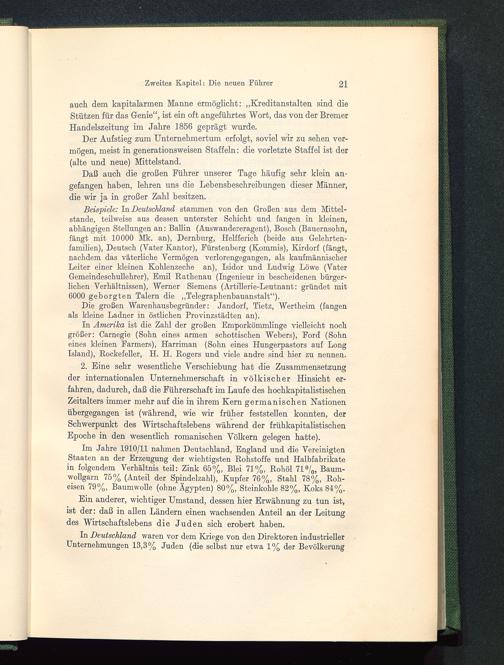 In Deutschland waren vor dem Kriege von den Direktoren industriellerUnternehmungen 13,3% Juden (die selbst nur etwa 1% der Bevölkerung