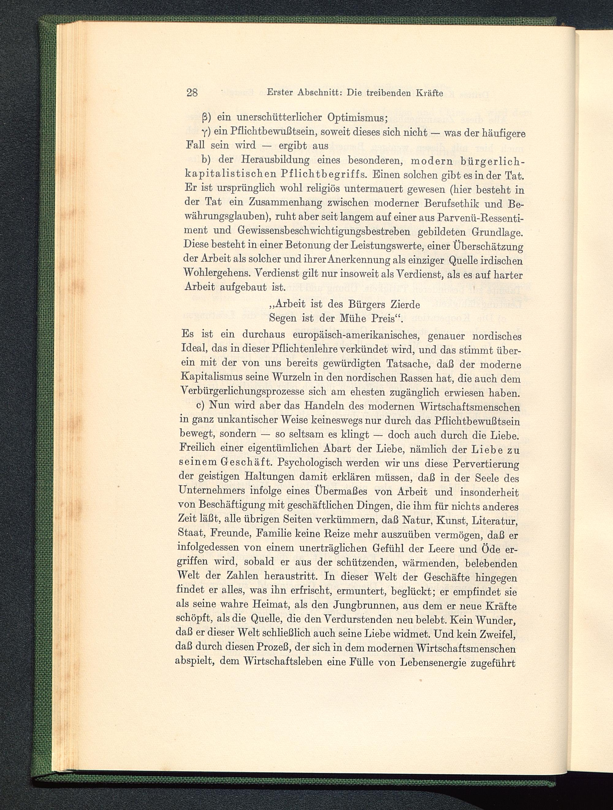 Es ist ein durchaus europäisch-amerikanisches, genauer nordischesIdeal, das in dieser Pflichtenlehre verkündet wird, und das stimmt über-ein mit der von uns bereits gewürdigten Tatsache, daß der moderneKapitalismus seine Wurzeln in den nordischen Rassen hat, die auch demVerbürgerlichungsprozesse sich am ehesten zugänglich erwiesen haben.