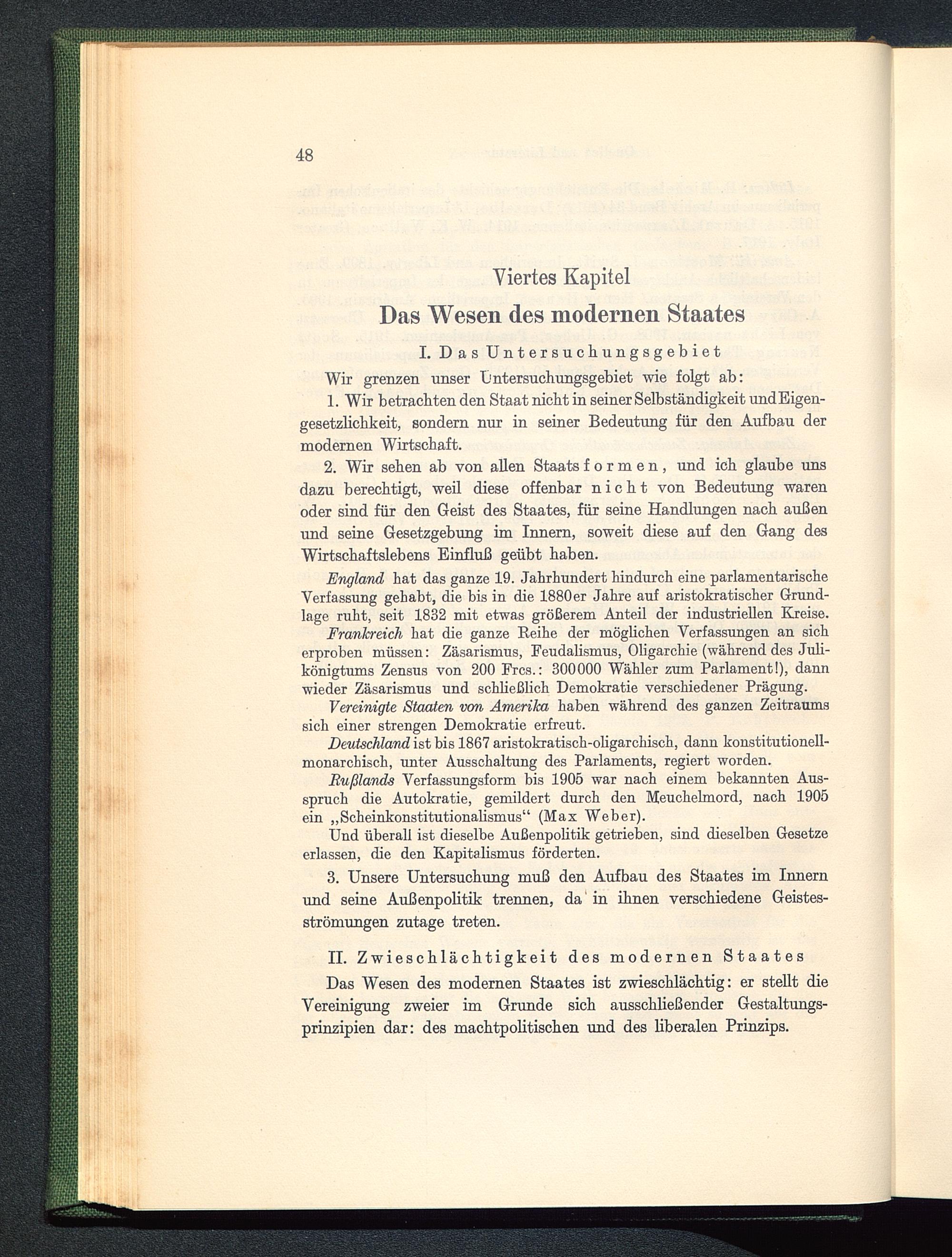 2. Wir sehen ab von allen Staats formen, und ich glaube unsdazu berechtigt, weil diese offenbar nicht von Bedeutung warenoder sind für den Geist des Staates, für seine Handlungen nach außenund seine Gesetzgebung im Innern, soweit diese auf den Gang desWirtschaftslebens Einfluß geübt haben.