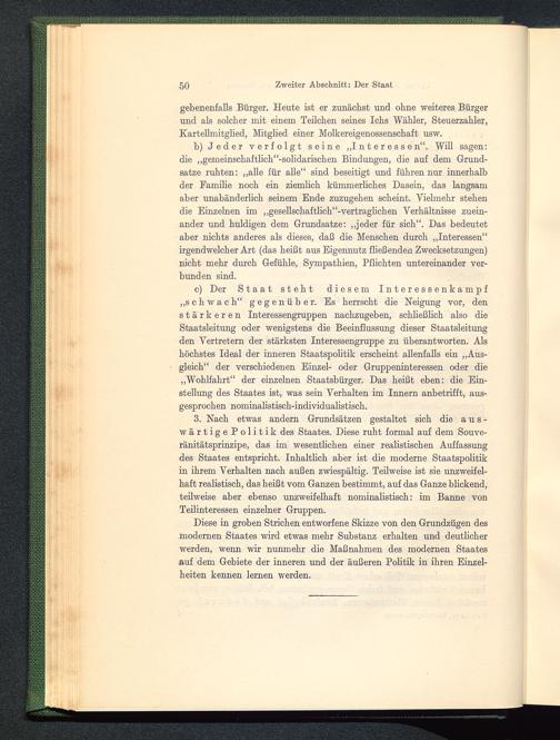 Diese in groben Strichen entworfene Skizze von den Grundzügen desmodernen Staates wird etwas mehr Substanz erhalten und deutlicherwerden, wenn wir nunmehr die Maßnahmen des modernen Staatesauf dem Gebiete der inneren und der äußeren Politik in ihren Einzel-heiten kennen lernen werden.