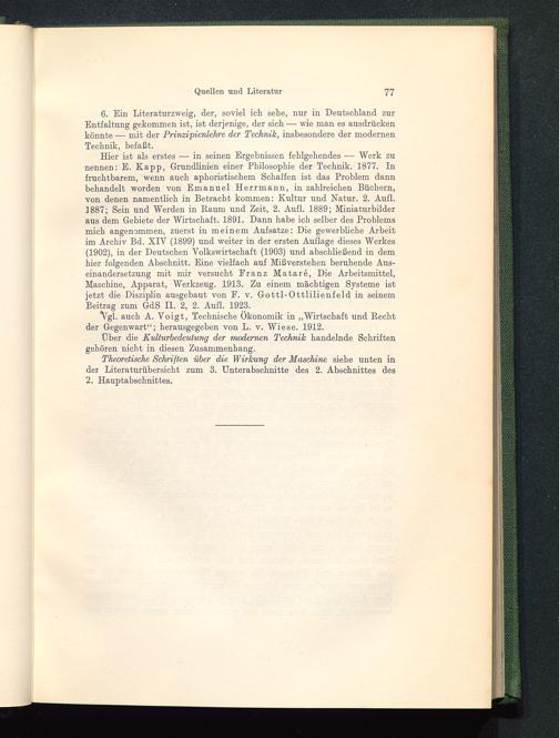 6. Ein. Literaturzweig, der, soviel ich sehe, nur in Deutschland zurEntfaltung gekommen ist, ist derjenige, der sich — wie man es ausdrückenkönnte — mit der Prinzipienlehre der Technik, insbesondere der modernenTechnik, befaßt.
