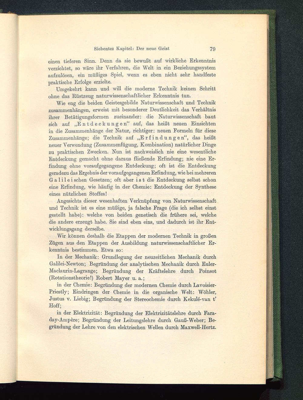 Wie eng die beiden Geistesgebilde Naturwissenschaft und TechnikZusammenhängen, erweist mit besonderer Deutlichkeit das Verhältnisihrer Betätigungsformen zueinander: die Naturwissenschaft bautsich auf „Entdeckungen“ auf, das heißt neuen Einsichtenin die Zusammenhänge der Natur, richtiger: neuen Formeln für dieseZusammenhänge; die Technik auf „Erfindungen“, das heißtneuer Verwendung (Zusammenfügung, Kombination) natürlicher Dingezu praktischen Zwecken. Nun ist nachweislich nie eine wesentlicheEntdeckung gemacht ohne daraus fließende Erfindung; nie eine Er-findung ohne vorauf gegangene Entdeckung; oft ist die Entdeckunggeradezu das Ergebnis der voraufgegangenen Erfindung, wie bei mehrerenGalilei sehen Gesetzen; oft aber ist die Entdeckung selbst schoneine Erfindung, wie häufig in der Chemie: Entdeckung der Syntheseeines nützlichen Stoffes!