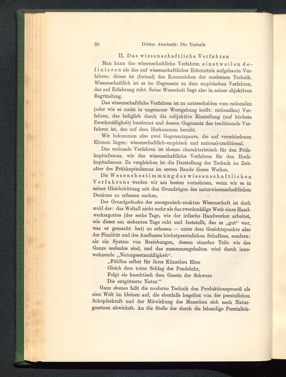 Das rationale Verfahren ist ebenso charakteristisch für den Früh-kapitalismus, wie das wissenschaftliche Verfahren für den Hoch-kapitalismus. Zu vergleichen ist die Darstellung der Technik im Zeit-alter des Frühkapitalismus im ersten Bande dieses Werkes.