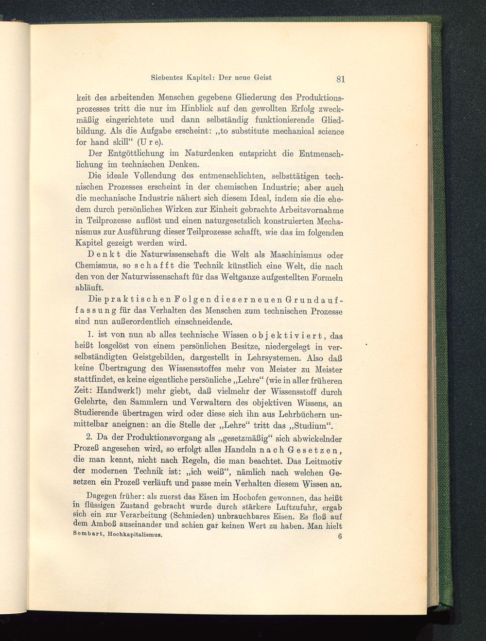 keit des arbeitenden Menschen gegebene Gliederung des Produktions-prozesses tritt die nur im Hinblick auf den gewollten Erfolg zweck-mäßig eingerichtete und dann selbständig funktionierende Glied-bildung. Als die Aufgabe erscheint: „to substitute mechanical Sciencefor hand skill“ (U r e).