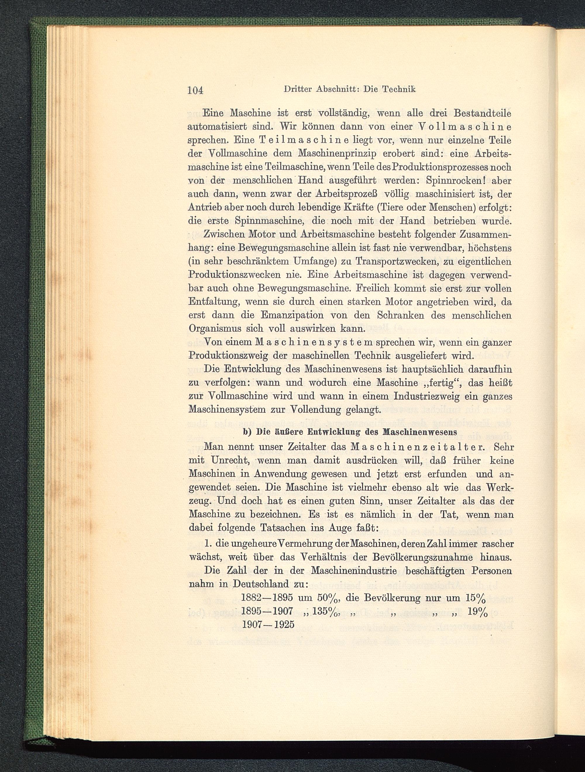 Die Entwicklung des Maschinenwesens ist hauptsächlich daraufhinzu verfolgen: wann und wodurch eine Maschine „fertig“, das heißtzur Vollmaschine wird und wann in einem Industriezweig ein ganzesMaschinensystem zur Vollendung gelangt.