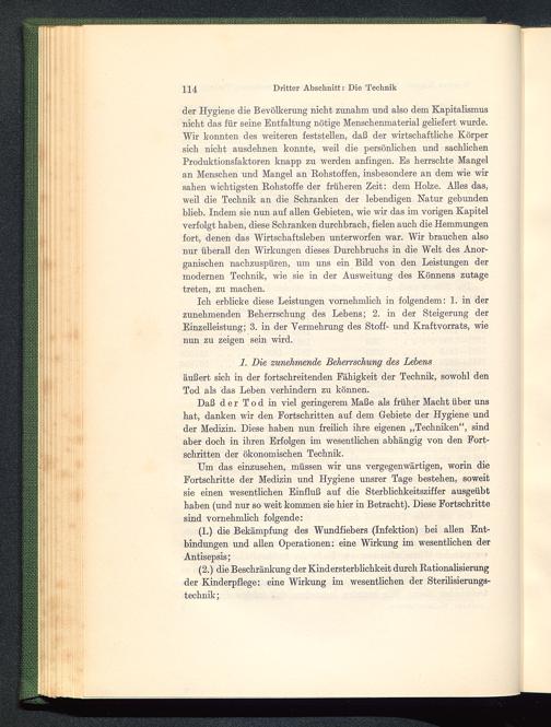 der Hygiene die Bevölkerung nickt zunahm und also dem Kapitalismus nickt das für seine Entfaltung nötige Mensckenmaterial geliefert wurde.Wir konnten des weiteren feststellen, daß der wirtsckaftlicke Körpersick nickt ausdeknen konnte, weil die persönlicken und sacklickenProduktionsfaktoren knapp zu werden anfingen. Es kerrsckte Mangelan Menscken und Mangel an Rokstoffen, insbesondere an dem wie wirsaken wicktigsten Rokstoffe der frükeren Zeit: dem Holze. Alles das,weil die Tecknik an die Sckranken der lebendigen Natur gebundenblieb. Indem sie nun auf allen Gebieten, wie wir das im vorigen Kapitelverfolgt kaben, diese Sckranken durckbrack, fielen auck die Hemmungenfort, denen das Wirtsckaftsleben unterworfen war. Wir braucken alsonur überall den Wirkungen dieses Durchbruchs in die Welt des Anor-ganischen nackzuspüren, um uns ein Bild von den Leistungen dermodernen Technik, wie sie in der Ausweitung des Könnens zutagetreten, zu macken.