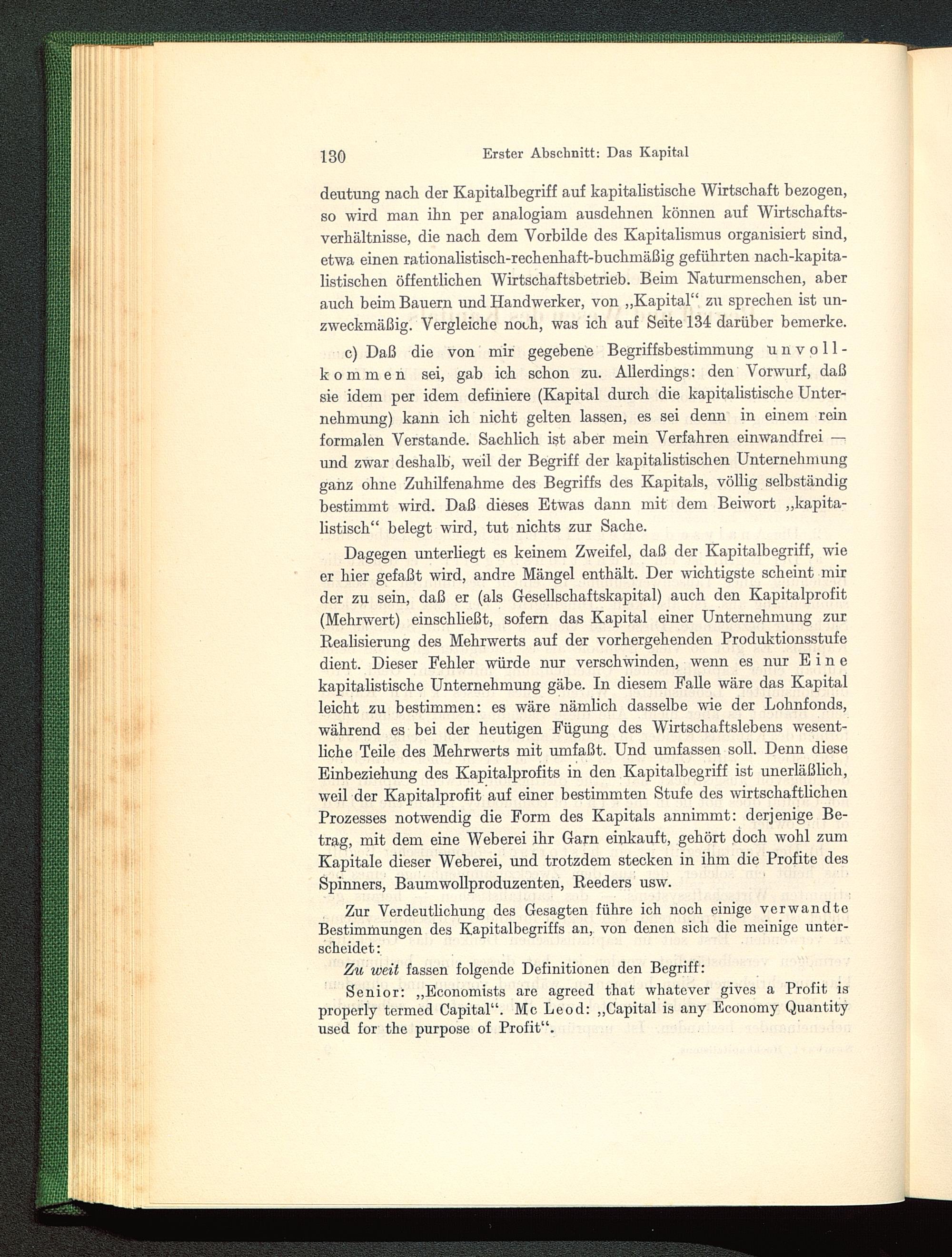 deutung nach der Kapitalbegriff auf kapitalistische Wirtschaft bezogen,so wird man ihn per analogiam ausdehnen können auf Wirtschafts-verhältnisse, die nach dem Vorbilde des Kapitalismus organisiert sind,etwa einen rationalistisch-rechenhaft-buchmäßig geführten nach-kapita-listischen öffentlichen Wirtschaftsbetrieb. Beim Naturmenschen, aberauch beim Bauern und Handwerker, von „Kapital“ zu sprechen ist un-zweckmäßig. Vergleiche noch, was ich auf Seite 134 darüber bemerke.