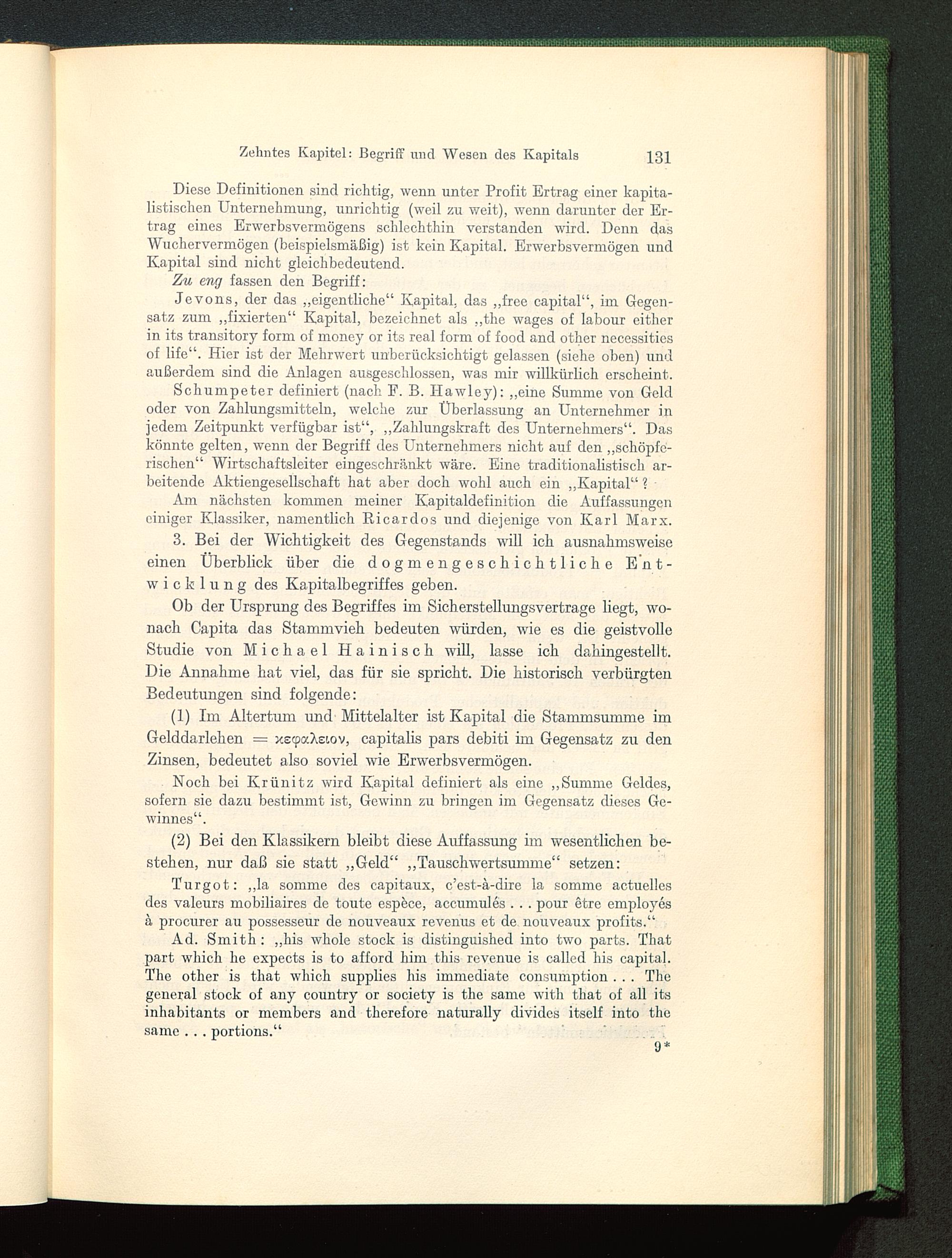 3. Bei der Wichtigkeit des Gegenstands will ich ausnahmsweiseeinen Überblick über die dogmengeschichtliche Ent-wicklung des Kapitalbegriffes geben.