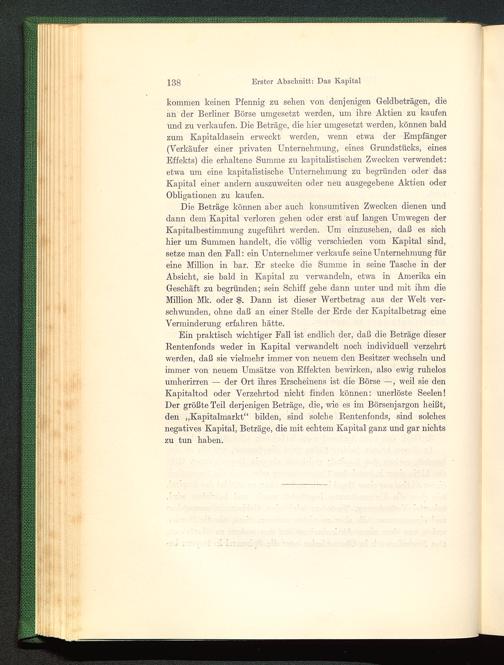 Die Beträge können aber auch konsumtiven Zwecken dienen unddann dem Kapital verloren gehen oder erst auf langen Umwegen derKapitalbestimmung zugeführt werden. Um einzusehen, daß es sichhier um Summen handelt, die völlig verschieden vom Kapital sind,setze man den Fall: ein Unternehmer verkaufe seine Unternehmung füreine Million in bar. Er stecke die Summe in seine Tasche in derAbsicht, sie bald in Kapital zu verwandeln, etwa in Amerika einGeschäft zu begründen; sein Schiff gehe dann unter und mit ihm dieMillion Mk. oder $. Dann ist dieser Wertbetrag aus der Welt ver-schwunden, ohne daß an einer Stelle der Erde der Kapitalbetrag eineVerminderung erfahren hätte.