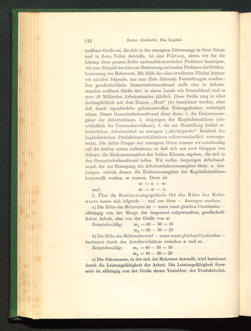 c) Die Gütermasse, in der sich der Mehrwert darstellt, wird bestimmtdurch die Leistungsfähigkeit der Arbeit. Die Leistungsfähigkeit ihrer-seits ist abhängig von der Größe dreier Variablen: der Produktivität,