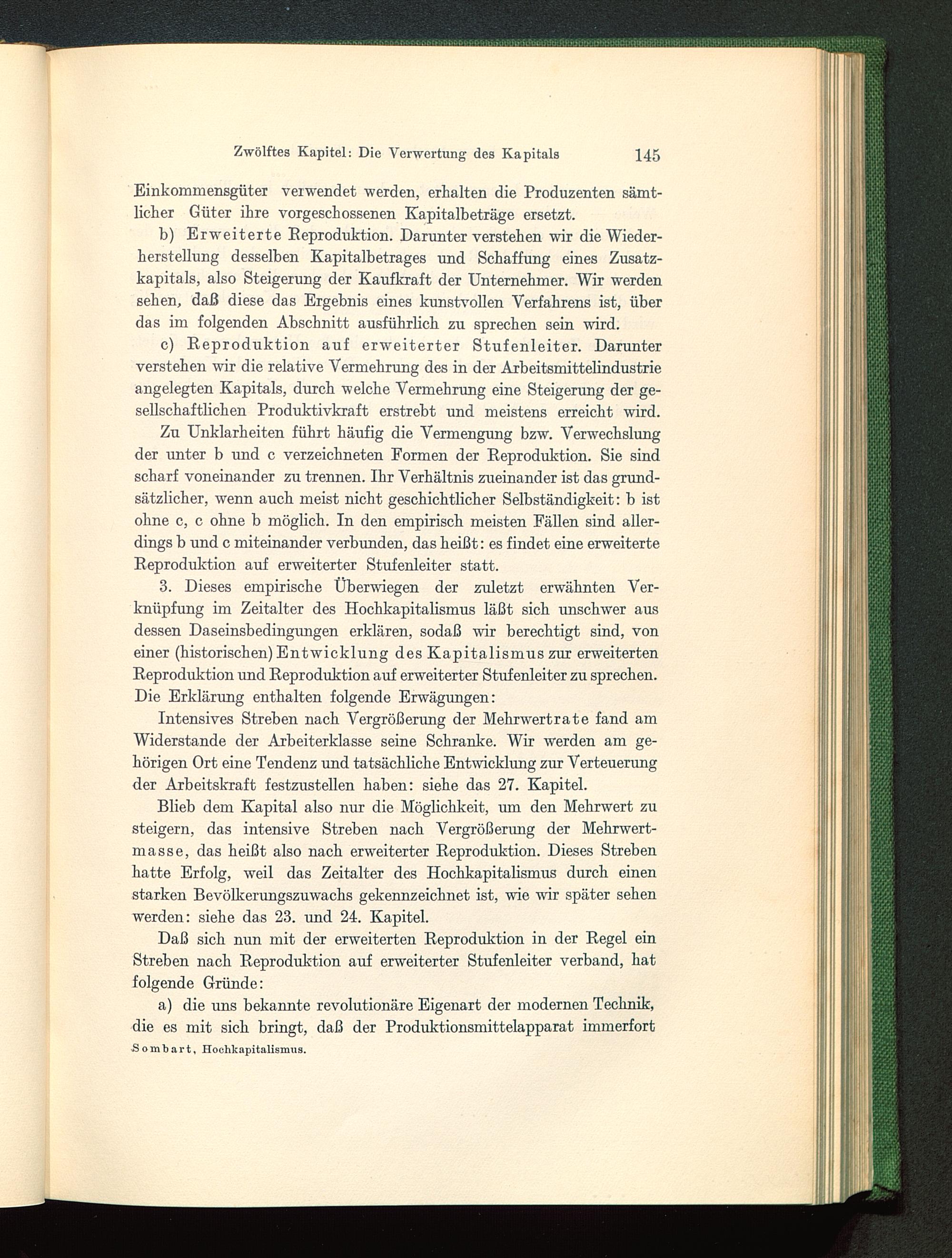 Blieb dem Kapital also nur die Möglichkeit, um den Mehrwert zusteigern, das intensive Streben nach Vergrößerung der Mehrwert-masse, das heißt also nach erweiterter Reproduktion. Dieses Strebenhatte Erfolg, weil das Zeitalter des Hochkapitalismus durch einenstarken Bevölkerungszuwachs gekennzeichnet ist, wie wir später sehenwerden: siehe das 23. und 24. Kapitel.