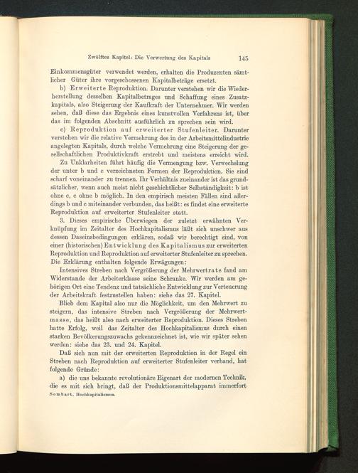 3. Dieses empirische Überwiegen der zuletzt erwähnten Ver-knüpfung im Zeitalter des Hochkapitalismus läßt sich imschwer ausdessen Daseinsbedingungen erklären, sodaß wir berechtigt sind, voneiner (historischen) Entwicklung des Kapitalismus zur erweitertenReproduktion und Reproduktion auf erweiterter Stufenleiter zu sprechen.Die Erklärung enthalten folgende Erwägungen:
