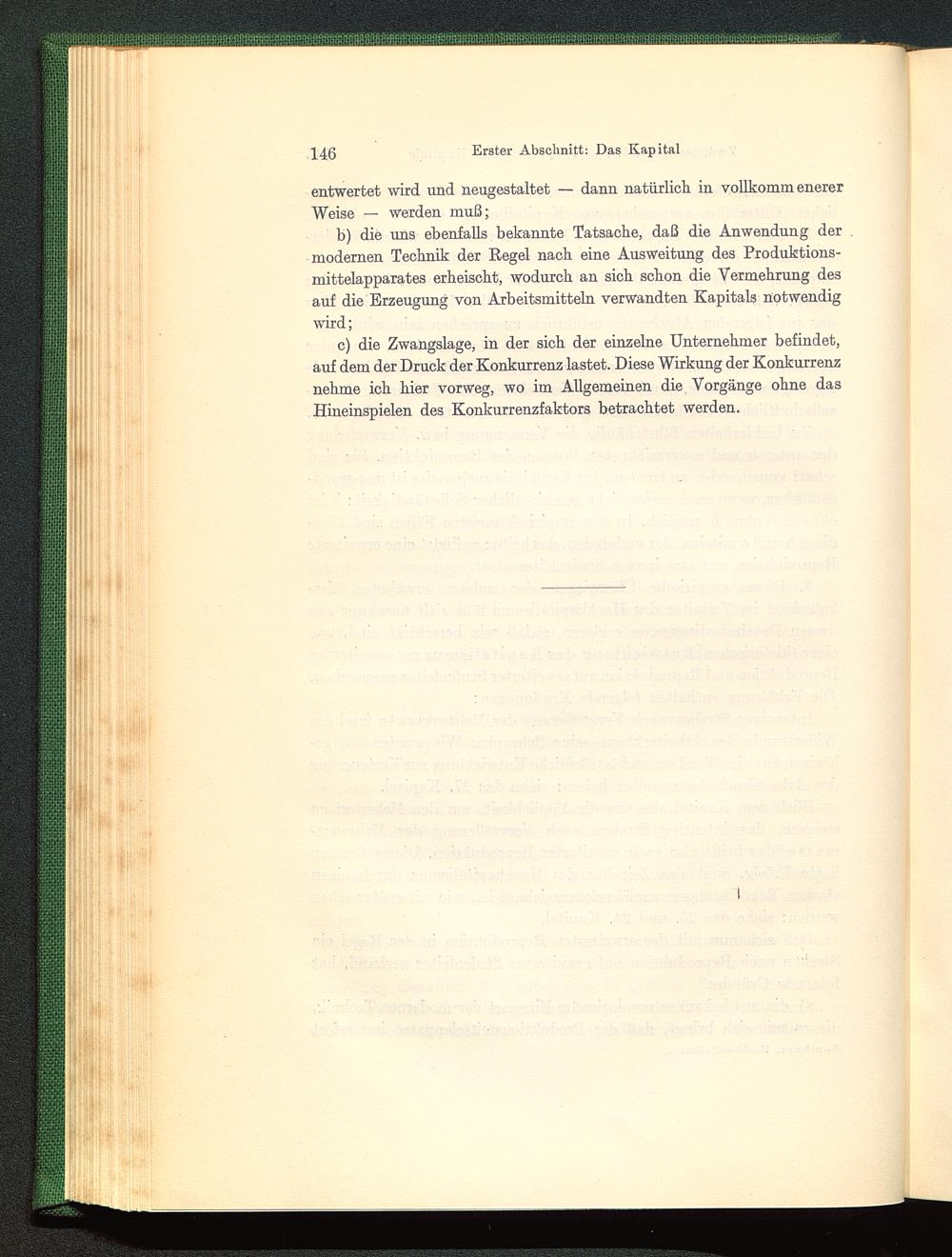 c) die Zwangslage, in der sich der einzelne Unternehmer befindet,auf dem der Druck der Konkurrenz lastet. Diese Wirkung der Konkurrenznehme ich hier vorweg, wo im Allgemeinen die Vorgänge ohne dasHineinspielen des Konkurrenzfaktors betrachtet werden.