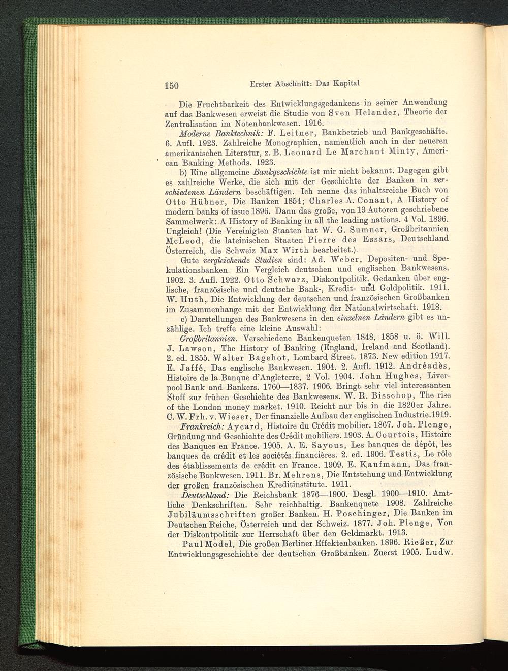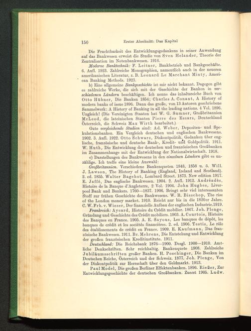 Gute vergleichende Studien sind: Ad. Weber, Depositen- und Spe-kulationsbanken. Ein Vergleich deutschen und englischen Bankwesens.1902. 3. Aufl. 1922. Otto Schwarz, Diskontpolitik. Gedanken über eng-lische, französische und deutsche Bank-, Kredit- und Goldpolitik. 1911.W. Huth,. Die Entwicklung der deutschen und französischen Großbankenim Zusammenhänge mit der Entwicklung der Nationalwirtschaft. 1918.