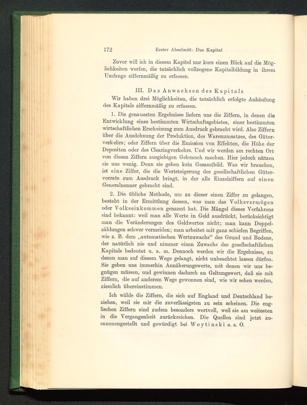 Zuvor will ich in diesem Kapitel nur kurz einen Blick auf die Mög-lichkeiten werfen, die tatsächlich vollzogene Kapitalbildung in ihremUmfange ziffernmäßig zu erfassen.