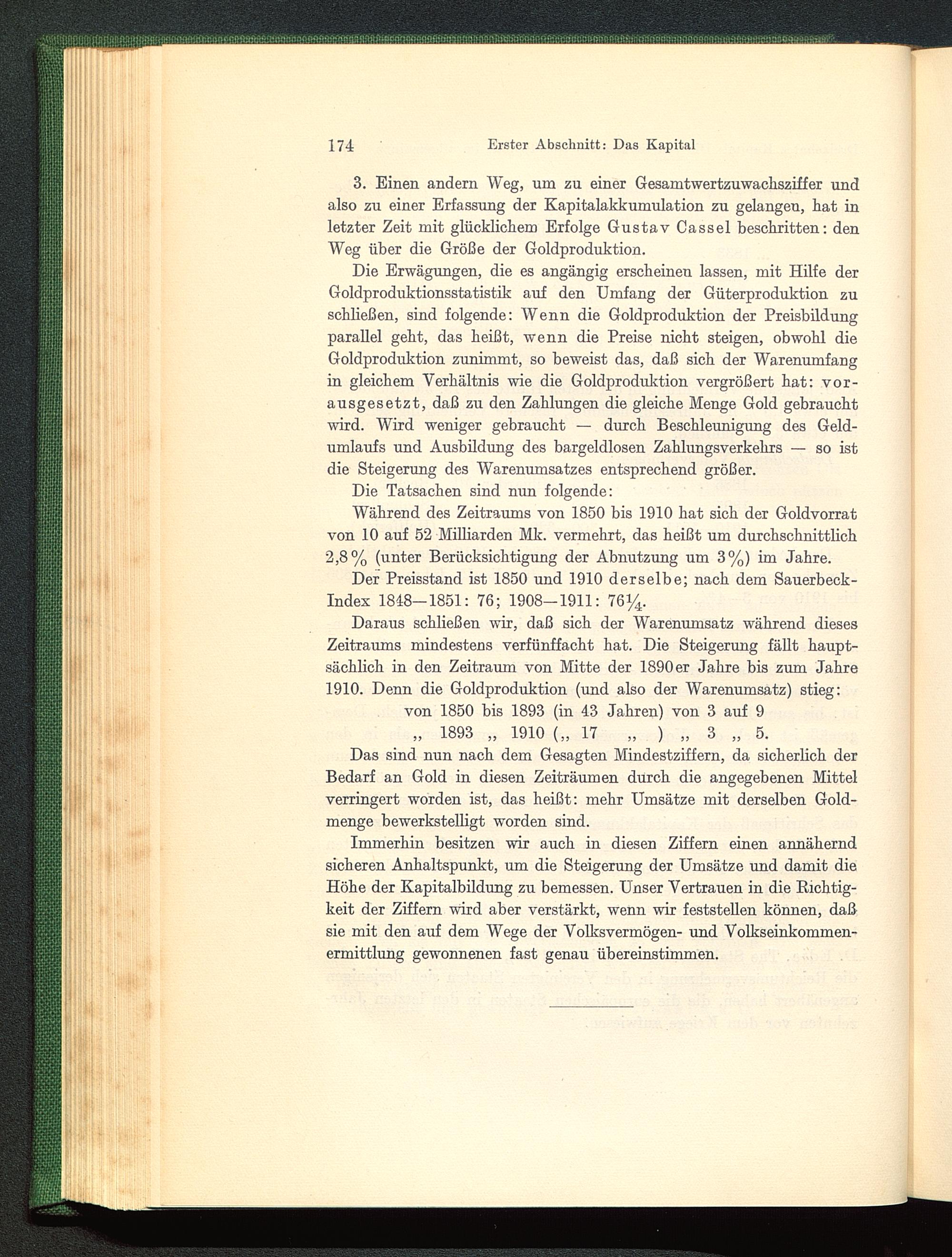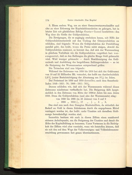 Während des Zeitraums von 1850 bis 1910 hat sich der Goldvorratvon 10 auf 52 Milliarden Mk. vermehrt, das heißt um durchschnittlich2,8% (unter Berücksichtigung der Abnutzung um 3%) im Jahre.
