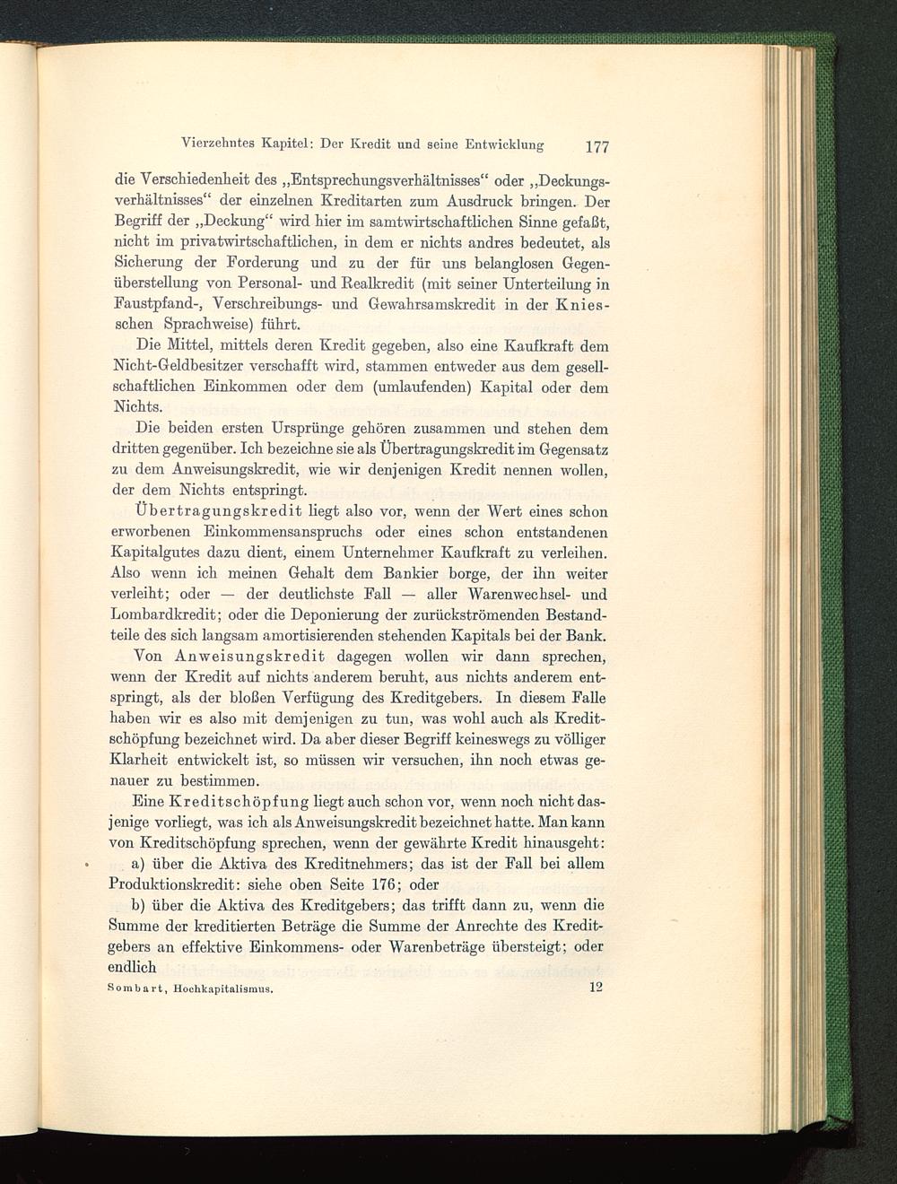 Die beiden ersten Ursprünge gehören zusammen und stehen demdritten gegenüber. Ich bezeichne sie als Übertragungskredit im Gegensatzzu dem Anweisungskredit, wie wir denjenigen Kredit nennen wollen,der dem Nichts entspringt.