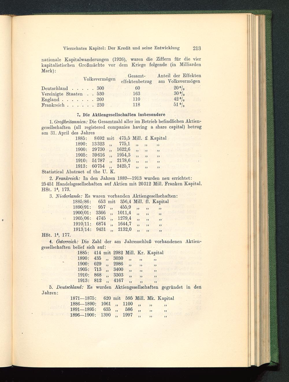 2. Frankreich: In den Jahren 1889—1913 wurden neu errichtet:25451 Handelsgesellschaften auf Aktien mit 20312 Mill. Franken Kapital.HSt. I 4 , 173.