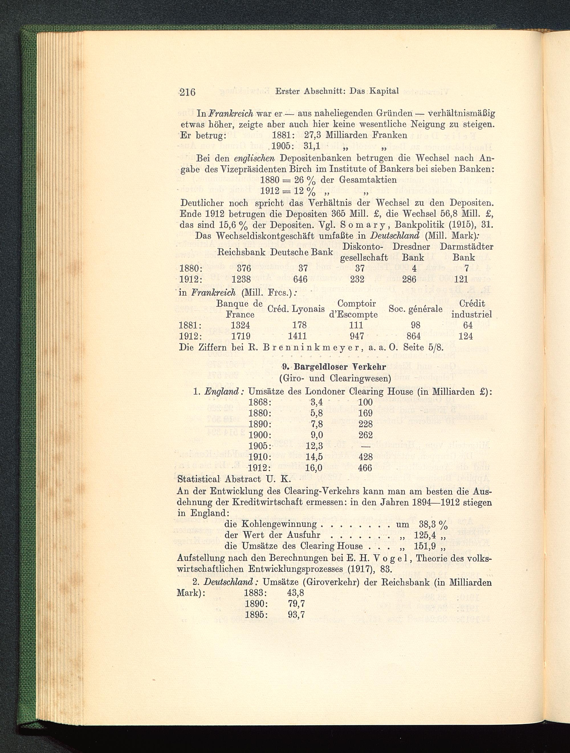 Bei den englischen Depositenbanken betrugen die Wechsel nach An-gabe des Vizepräsidenten Birch im Institute of Bankers bei sieben Banken:1880 = 26 % der Gesamtaktien1912 = 12 % „
