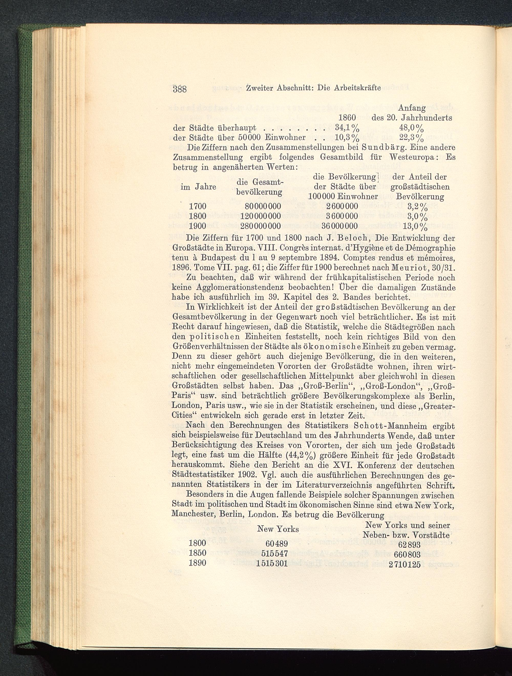 Die Ziffern für 1700 und 1800 nach J. Bel och, Die Entwicklung derGroßstädte in Europa . VIII. Congrbs internat. d’Hygiene et de Demographietenu ä Budapest du 1 au 9 septembre 1894. Comptes rendus et memoires,1896. Tome VII. pag. 61; die Ziffer für 1900 berechnet nach Meuriot, 30/31.