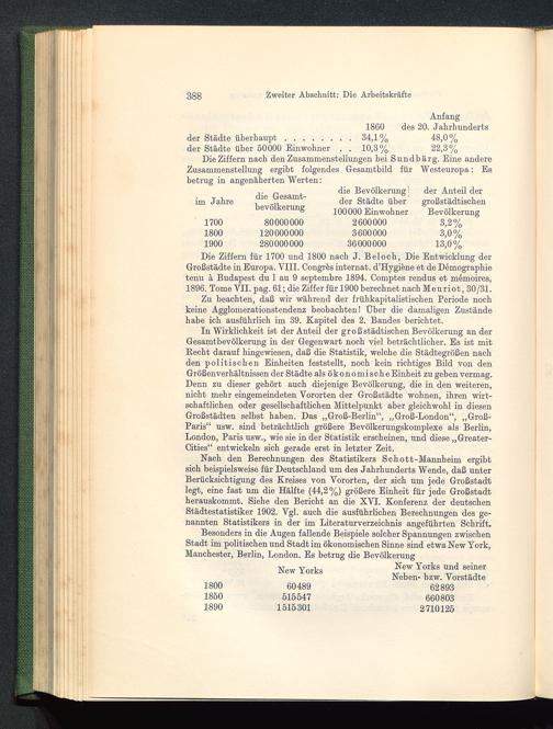 Nach den Berechnungen des Statistikers Schott-Mannheim ergibtsich beispielsweise für Deutschland um des Jahrhunderts Wende, daß unterBerücksichtigung des Kreises von Vororten, der sich um jede Großstadtlegt, eine fast um die Hälfte (44,2%) größere Einheit für jede Großstadtherauskommt. Siehe den Bericht an die XVI. Konferenz der deutschenStädtestatistiker 1902. Vgl. auch die ausführlichen Berechnungen des ge-nannten Statistikers in der im Literaturverzeichnis angeführten Schrift.