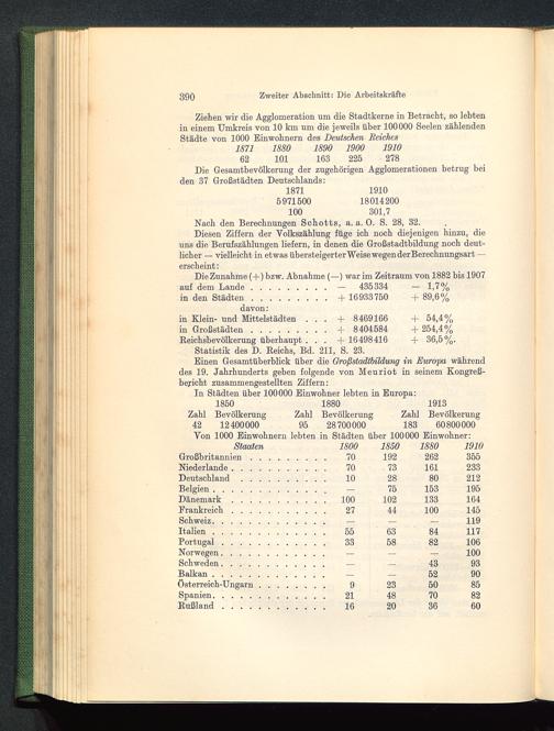 Einen Gesamtüberblick über die Großstadtbildung in Europa währenddes 19. Jahrhunderts geben folgende von Meuriot in seinem Kongreß-bepcht zusammengestellten Ziffern: