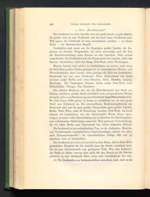 Die Großstadt ist nicht dasselbe wie eine große Stadt: es gibt-Städte,die größer sind als eine Großstadt und die doch keine Großstadt sind.Will sagen: die Großstadt ist kein statistischer, sondern — an dieserStelle — ein ökonomischer Begriff.