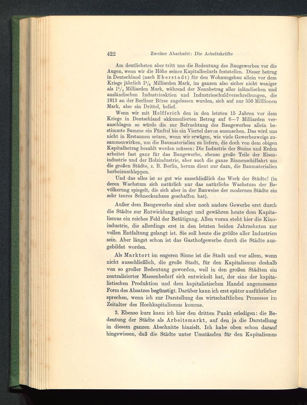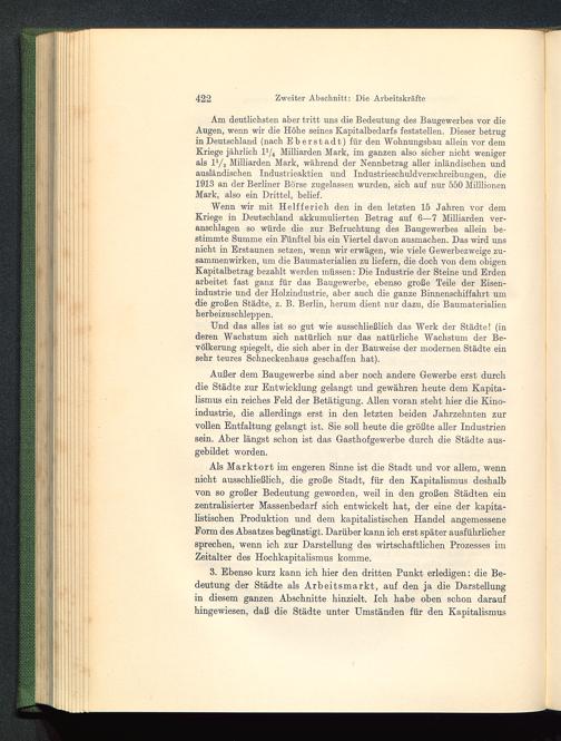 3. Ebenso kurz kann ich hier den dritten Punkt erledigen: die Be-deutung der Städte als Arbeitsmarkt, auf den ja die Darstellungin diesem ganzen Abschnitte hinzielt. Ich habe oben schon daraufhingewiesen, daß die Städte unter Umständen für den Kapitalismus
