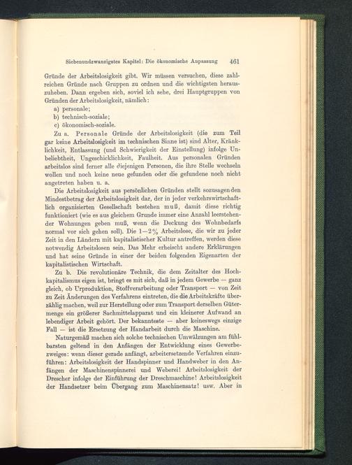 Siebenundzwanzigstes Kapitel: Die ökonomische Anpassung 461